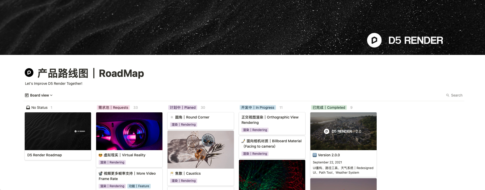 非常感谢您对D5渲染器即将推出的功能感兴趣,产品路线图将定期更新。