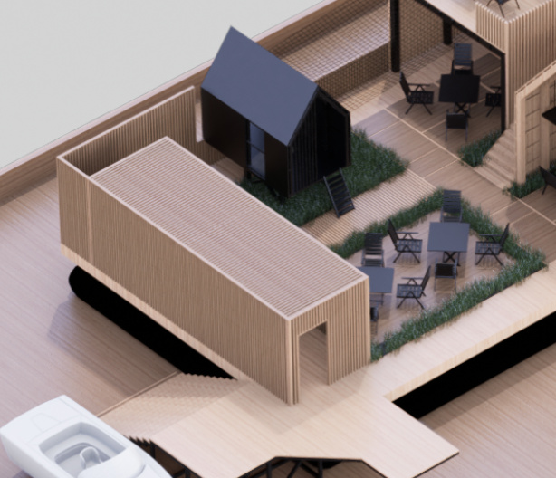 基于水体的模型,例如荷花、船只、浮在水面的落叶等等,可以随水纹大致的波动,还有水中的鱼儿。