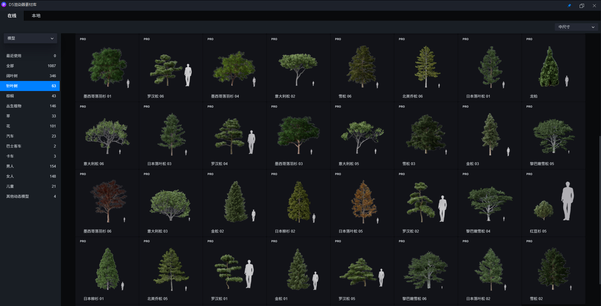 打开D5渲染器后,您可以在模型库中使用共计732种植物模型。