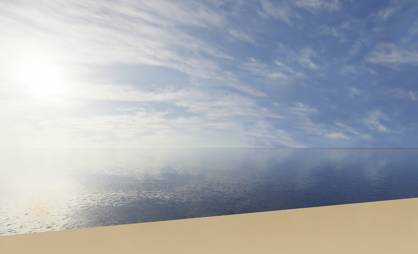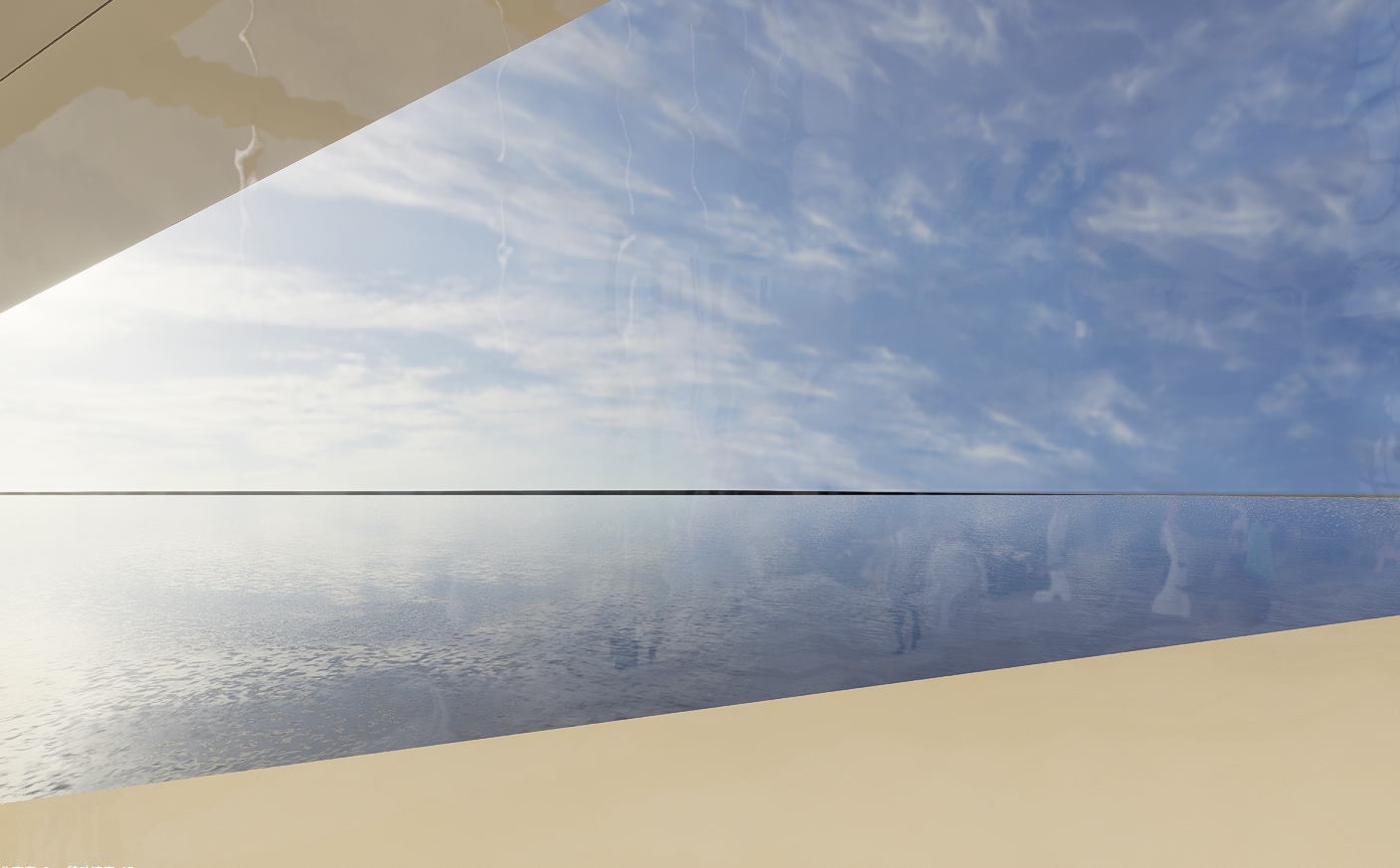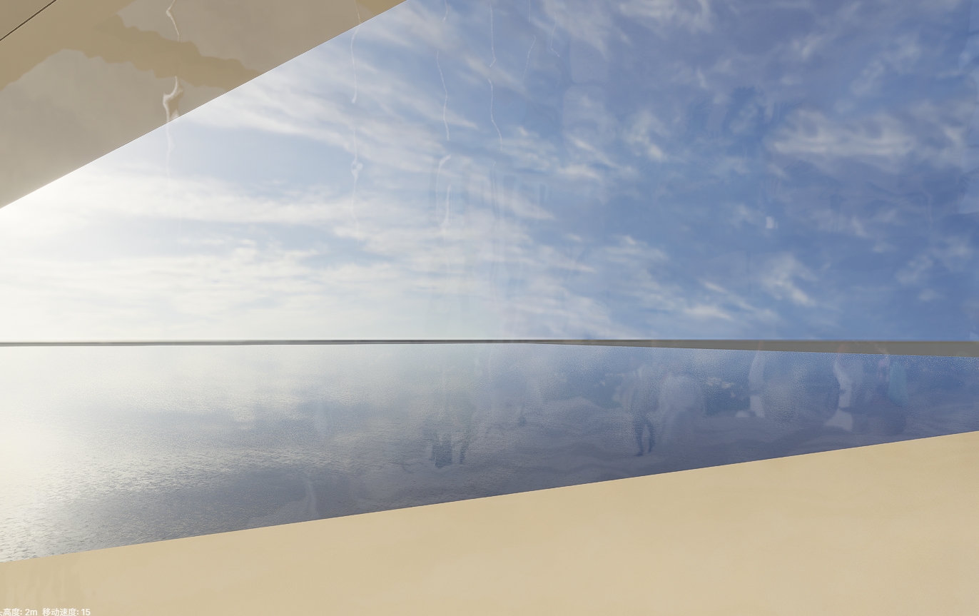 远处的海水边缘(10000m以外)在室内透过玻璃看是黑的,稍微近一点则没这个问题。如果是在室外看,也没有这个问题。试着将海水做小一点,但场景自带黑色地面,依然无法解决远处的大海是黑的这种问题.