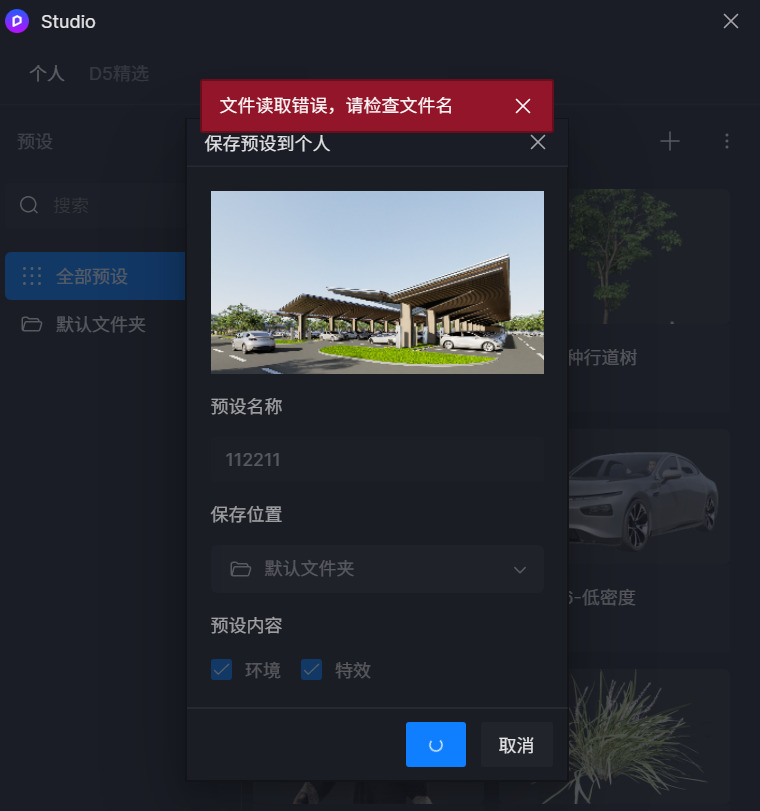 您好,添加studio预设时,场景使用.exr格式hdri文件,会提示保存失败(“文件读取错误,请检查文件名”)