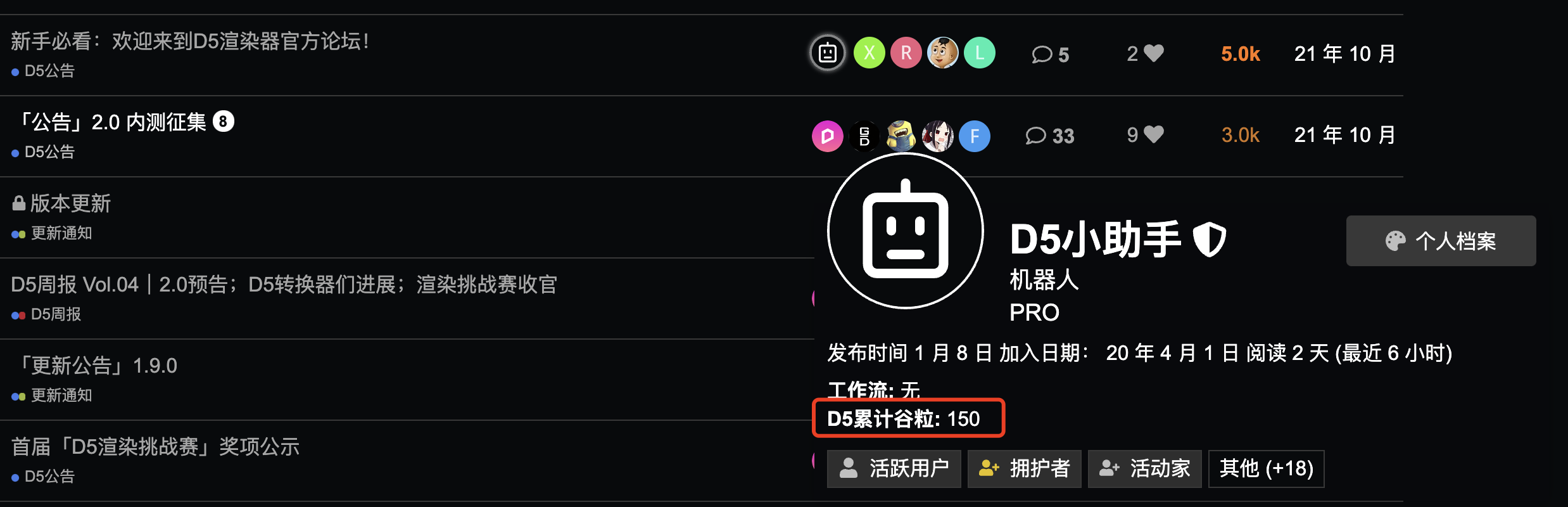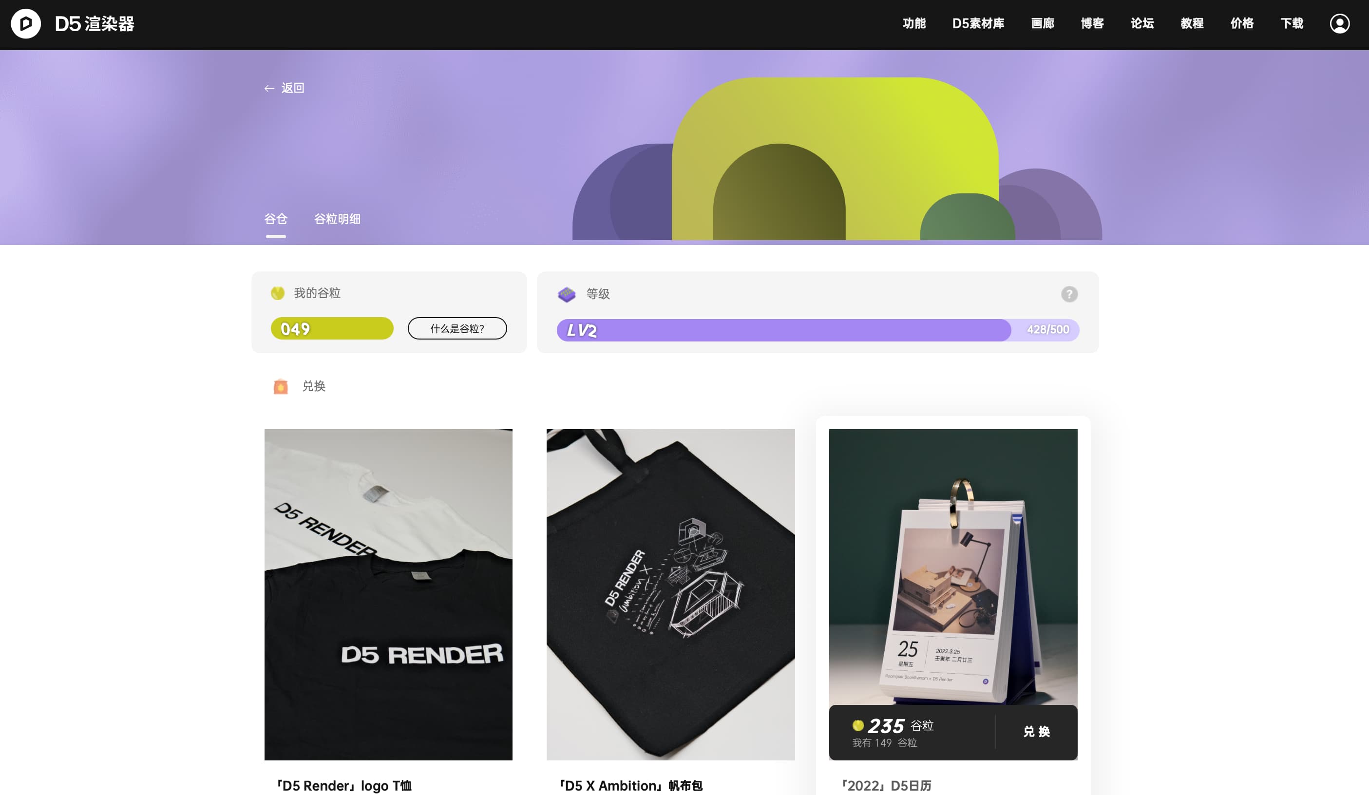 我们为所有参与D5渲染器 2.1版本内测的小伙伴补发了「参与内测」的5个谷粒